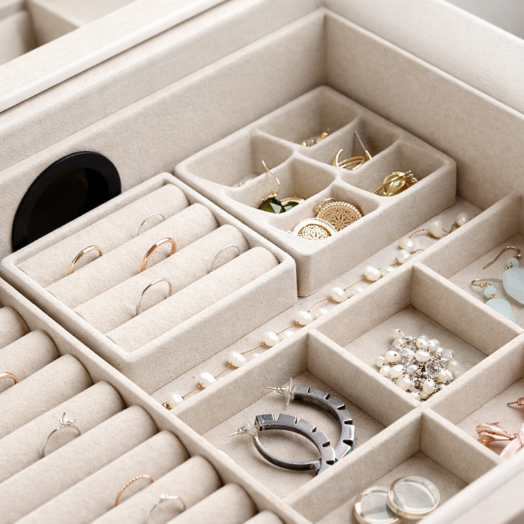 • Three Compartment Styles – Includes ring rolls, stud earring panel, and multi-slot dividers for versatile organization