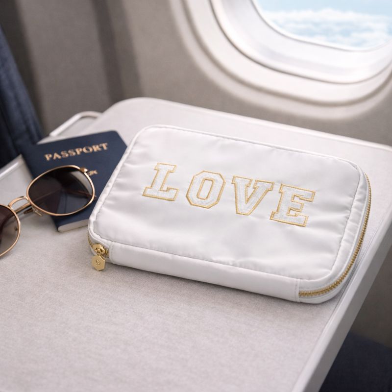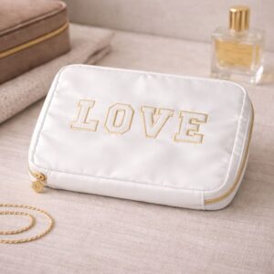 Bryn Embroidered Jewelry Travel Pouch ~ White