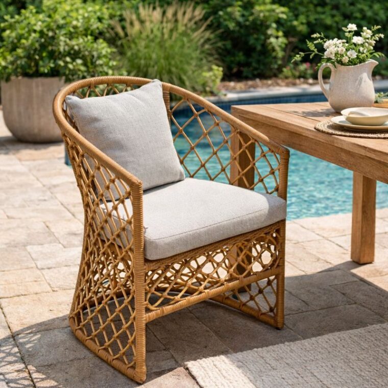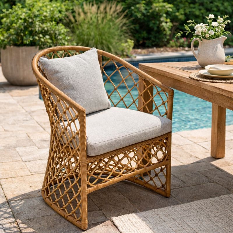 Bring effortless coastal charm to your patio or backyard with the Capistrano Teak Outdoor Dining Chair. Designed for comfort and crafted for durability, this chair is the perfect blend of style and functionality. The graceful silhouette features a sturdy aluminum frame wrapped in all-weather woven rattan, giving it a light and airy presence while standing up to the elements. With generous seat dimensions (21” W x 24” D) and plush quick-dry cushions, it’s made for lingering conversations and long outdoor dinners. Whether you’re refreshing your dining space or creating a new open-air oasis, the Capistrano Chair delivers comfort, sophistication, and lasting quality.