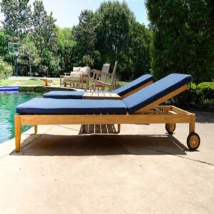 Clearwater Teak Sunbrella Chaise Lounger, Navy