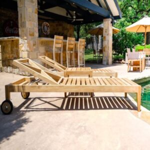 Bring comfort and performance together with the Clearwater Teak Sunbrella Chaise Lounger, designed to elevate your outdoor lounging experience. Crafted from solid Grade-A teak and paired with premium Sunbrella® fabric cushions, this chaise offers durability, style, and ease of care. The four-position adjustable backrest and stainless steel hardware allow for customized relaxation, while built-in wheels make it easy to move between sun and shade. Whether poolside or patio, this lounger offers timeless design and unmatched function.