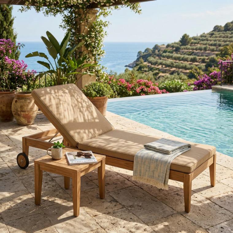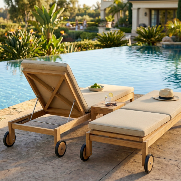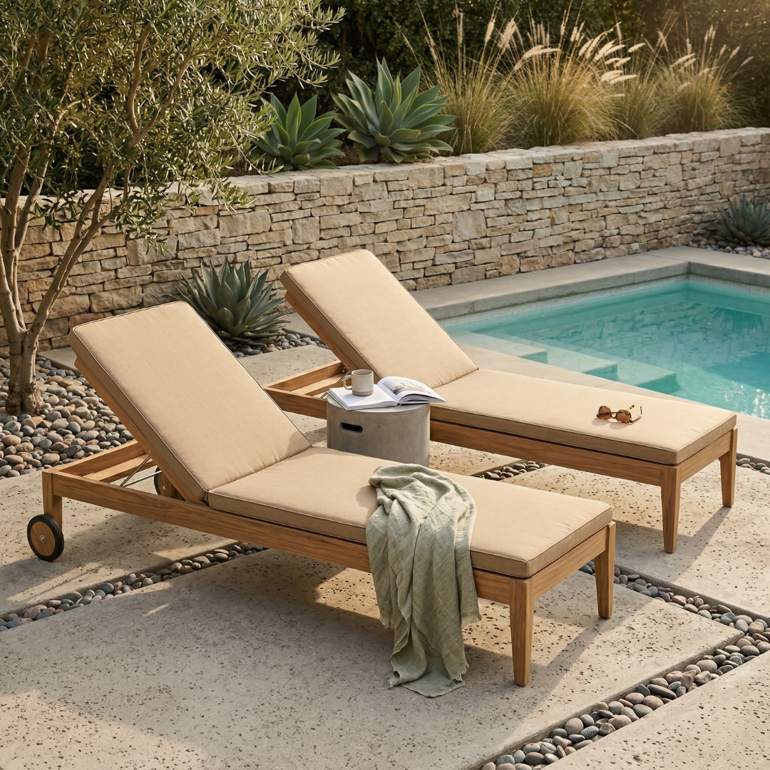 Bring elevated comfort and effortless style to your outdoor space with the Clearwater Teak Chaise Lounge Chair. Crafted from premium Grade-A teak and paired with a high-performance outdoor cushion, this lounger is designed for long-lasting durability and everyday relaxation. The adjustable backrest allows you to sit upright, recline, or lay flat, while built-in wheels make it easy to move between sun and shade. Fully assembled and ready to use, it’s a timeless addition to any patio, poolside, or backyard setting.