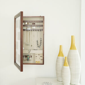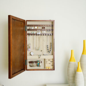 I love the versatility with this piece; to hold my photos and my jewelry in one place is so convenient. We went looking for an armoire so I could keep my things safe from little toddler hands and found this. The only problem is that the instructions don’t say what size drill bit to use. Otherwise, this is a great piece – functional and beautiful.