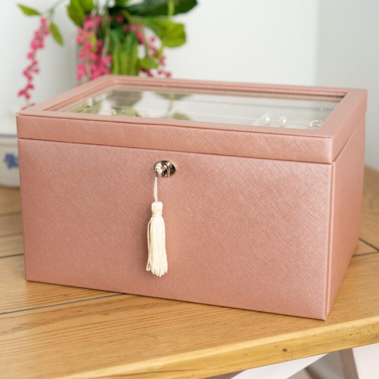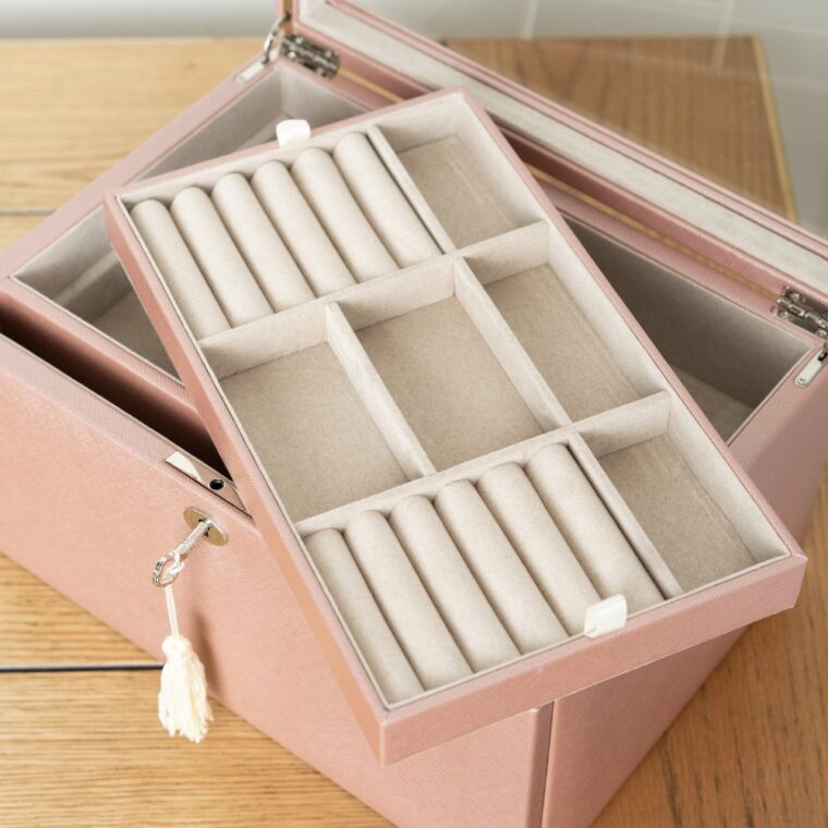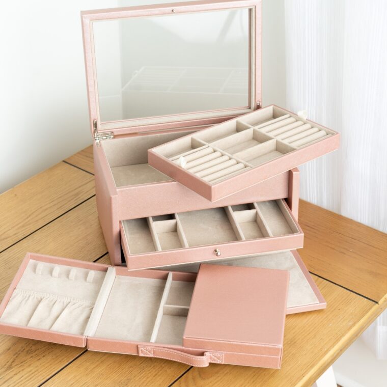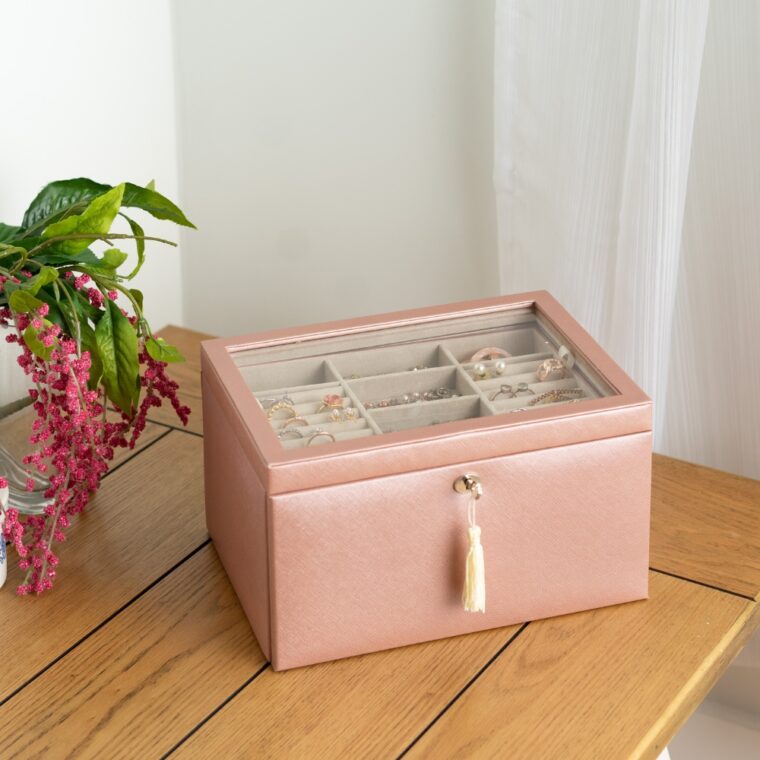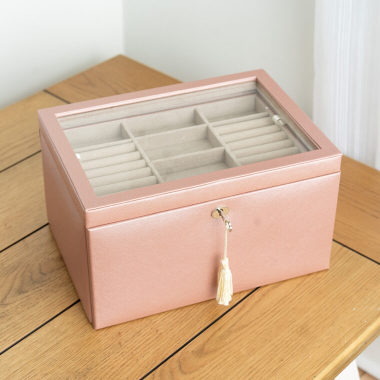 - Top drawer with divided compartments for organized jewelry storage