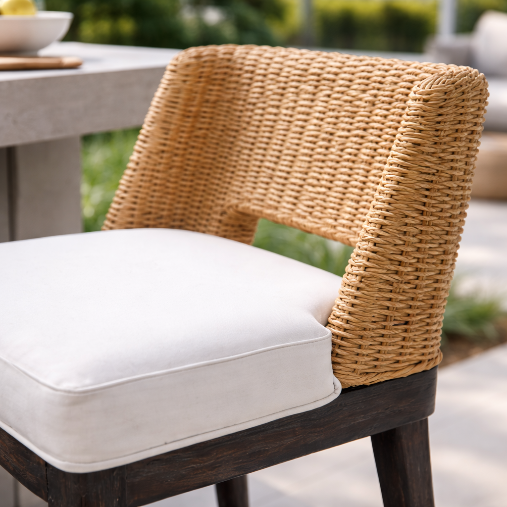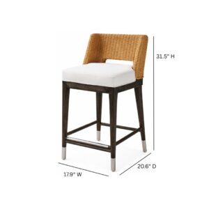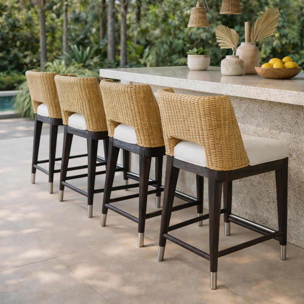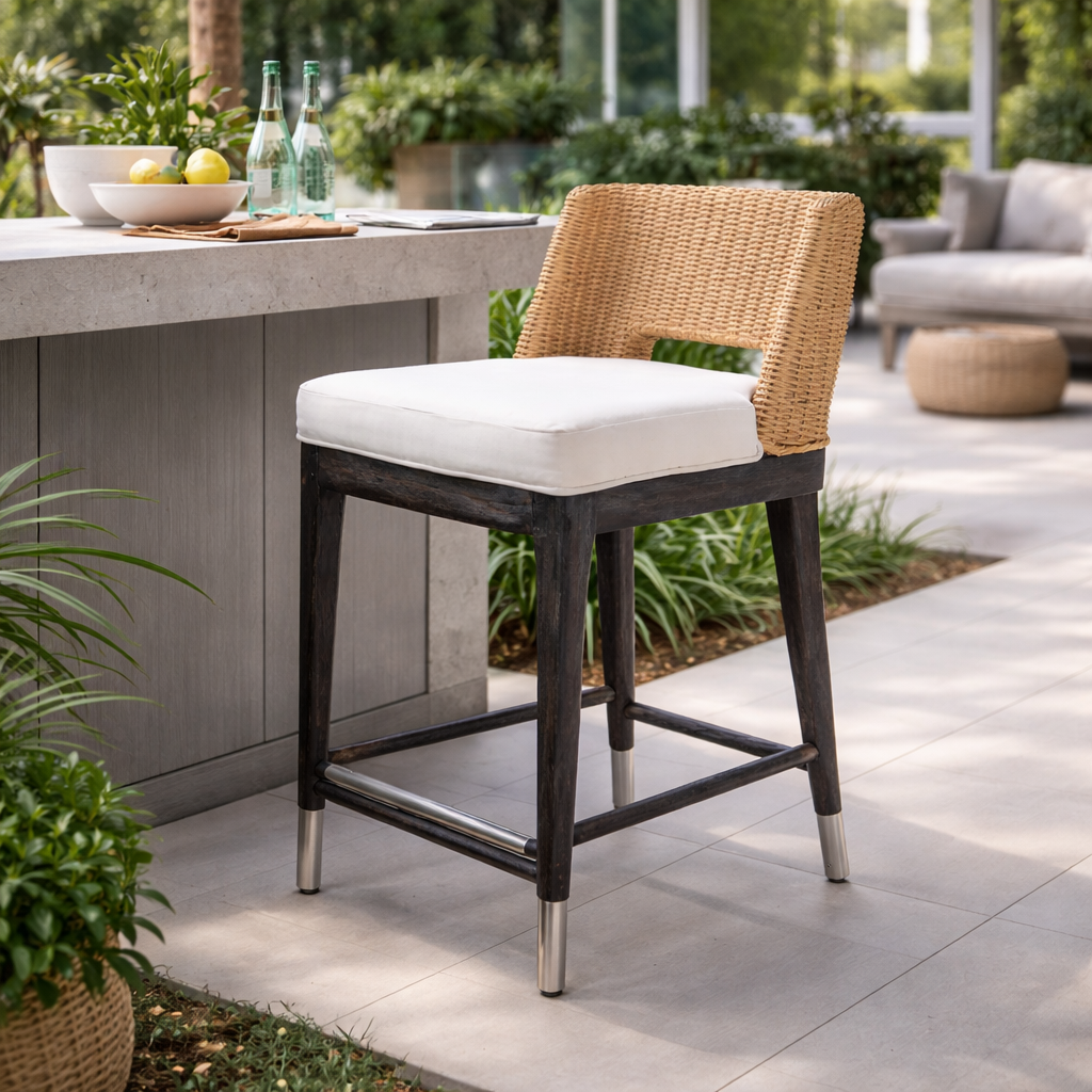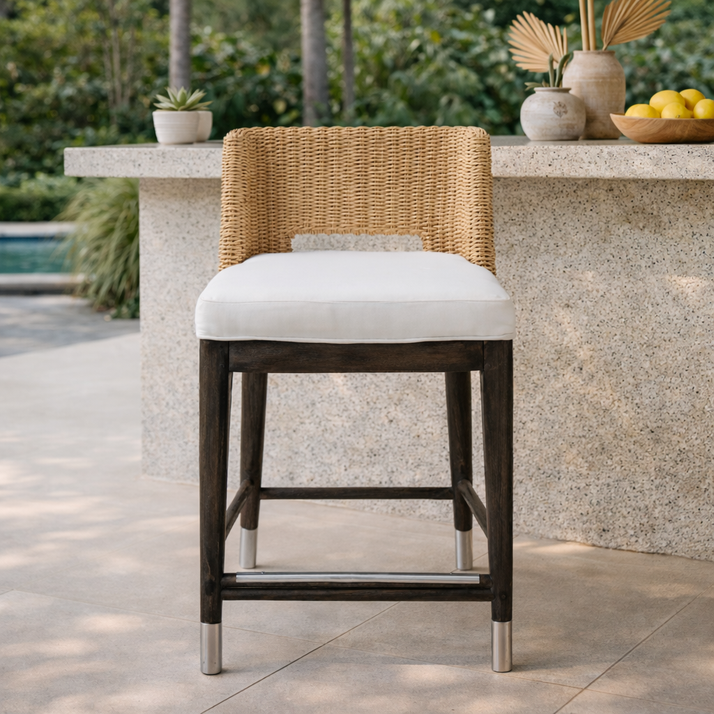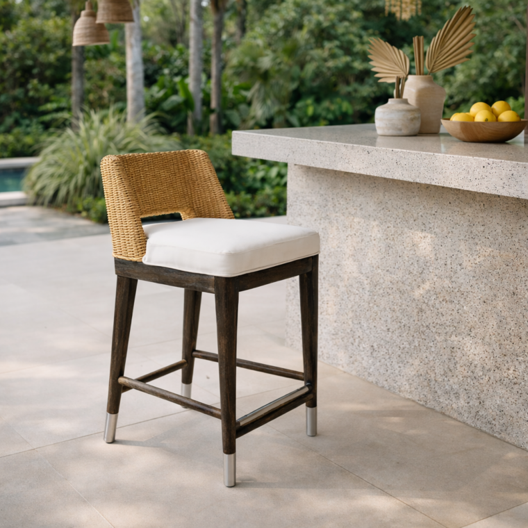 Upgrade your indoor or outdoor seating with the Fritz Teak Barstool, a perfect blend of style, durability, and comfort. Crafted from premium Grade A teak, this counter-height stool features a weather-resistant wicker back that adds texture and elegance. The quick-dry cushion includes a 3-layer reticulated foam core, ensuring superior drainage and long-lasting support. Designed for versatility, this barstool is perfect for both indoor and outdoor spaces, from patios and outdoor bars to kitchen counters and high-top tables. Built with rust-resistant stainless steel hardware, it withstands the elements while maintaining its timeless appeal.