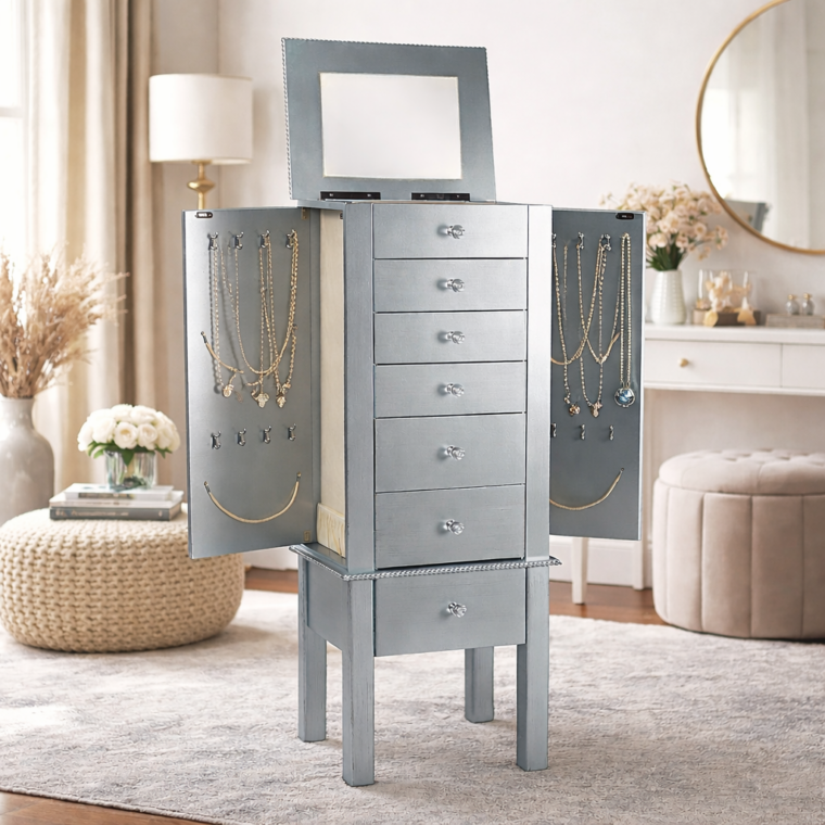 THIS JEWELRY ARMOIRE IS BEAUTIFUL.