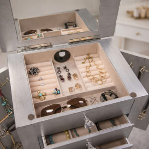 Beautiful armoire! The silver color adds a nice touch to my bedroom. The storage is plentiful and well thought out. Worth the price, highly recommended!