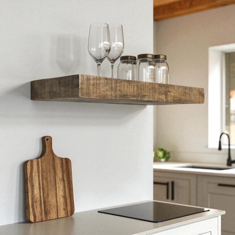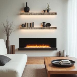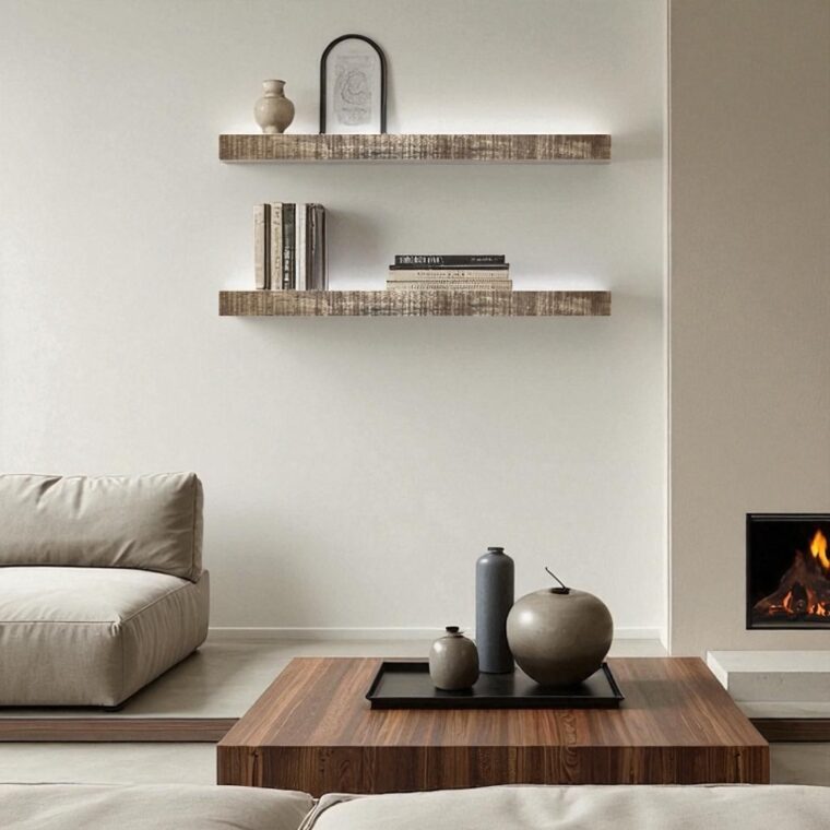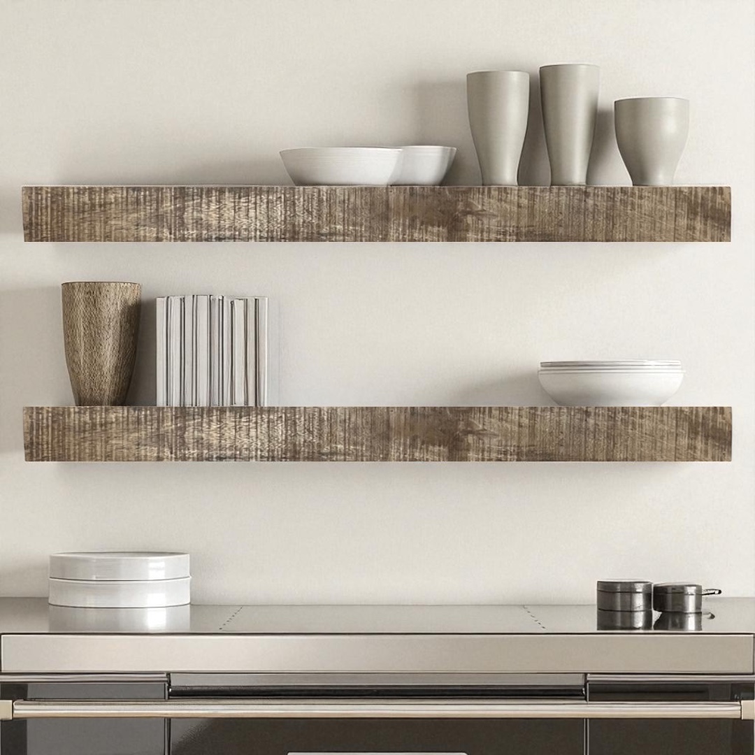 - Floating shelf design with hidden bracket for a seamless look