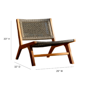 Elevate your living space with the Julian Accent Chair. This sleek chair combines grade-A teak with woven rattan for a perfect blend of style and comfort. Its mid-century modern design features a sturdy teak frame with four elegantly flared legs, offering a sophisticated look that complements any room. The rattan seat and back provide a breezy, relaxed feel, making this chair perfect for lounging in your living room, patio, or office. With its low-profile design, this chair invites you to sink in and unwind, whether alone or with friends and family.