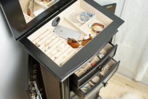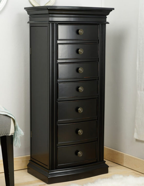 - 7 spacious pull-out drawers to store all your precious jewelry