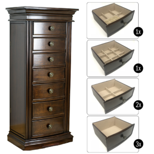 • 7 spacious pull-out drawers to store all your precious jewelry