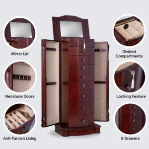 - Spacious & Organized Drawers – Eight lined and padded drawers with separated compartments help keep jewelry and accessories neatly arranged.