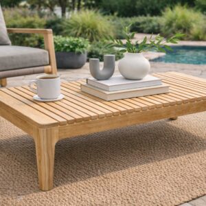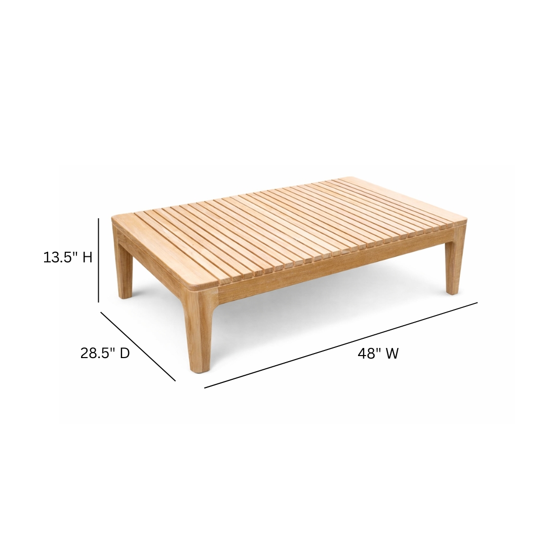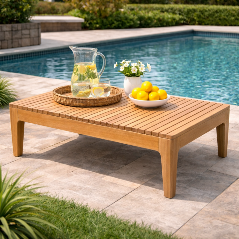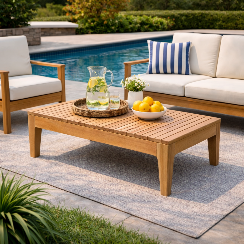 Bring laid-back luxury to your outdoor gatherings with the Maui Teak Outdoor Patio Coffee Table. Designed with a clean, low-profile silhouette, this table offers generous surface space—ideal for serving drinks, appetizers, or showcasing your favorite décor. Expertly crafted from Grade-A teak sourced from Indonesia, this piece is built to withstand the elements while aging gracefully. Whether used poolside or on a shaded patio, it’s a timeless addition to any outdoor setting.