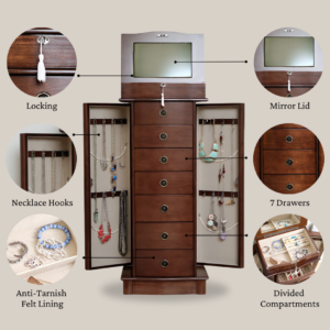 - Ample storage space for all types of jewelry, from rings to bracelets to earrings and more.