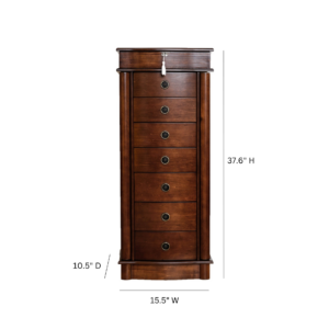 This cabinet armoire is beautiful and perfect for storing my jewelry. It came packaged for protection and care in shipping. Easy to complete set up. Very pleased with all aspects of cabinet, nice to see company with high standards.