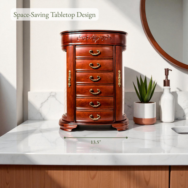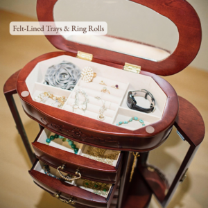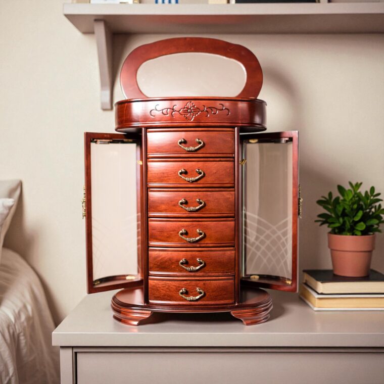 I ordered this Beautiful Jewelry Cabinet for my Mother’s Day gift, it was on back order, just received it yesterday, it was worth the wait. It has so much storage and it was very well packed for shipping!! Look forward to seeing it sit on my dresser everyday!!