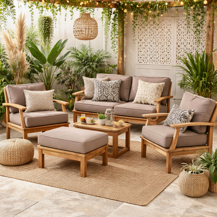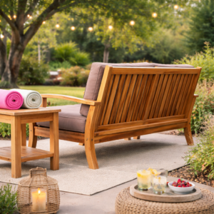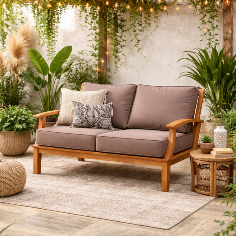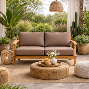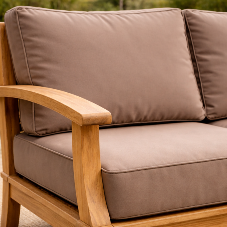 Bring timeless charm and enduring quality to your outdoor space with the Pavilion Teak 57″ Sofa. Designed in a traditional style with deep, plush seating, this sofa blends elegant aesthetics with practical durability. Crafted from sustainably sourced Grade-A teak and reinforced with mortise and tenon joinery, it offers exceptional strength and weather resistance. The Pavilion Sofa features quick-dry cushions with a breathable reticulated foam core and fade-resistant fabric—perfect for enjoying every season in comfort and style.