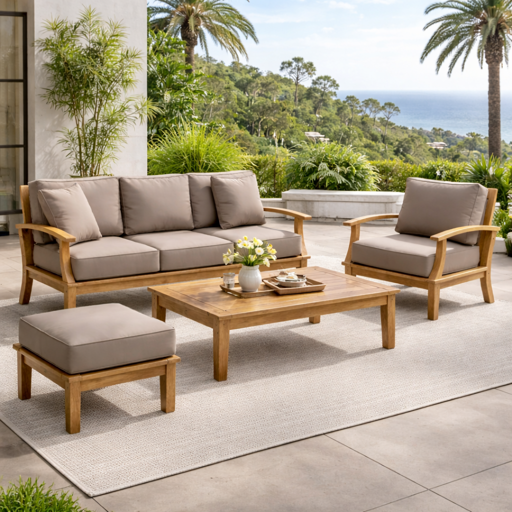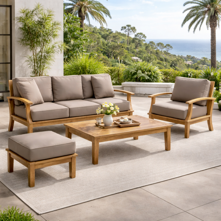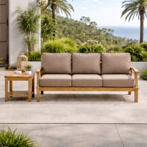 Transform your outdoor space with the Pavilion Outdoor 82-Inch Sofa, designed to blend luxury and durability. Constructed with premium grade-A teak sourced from sustainable forestry in Indonesia, this sofa offers exceptional strength and a timeless, elegant look. The deep seating cushions, made from Sunproof fabric, are weather-resistant, quick-drying, and offer UV protection, making them perfect for year-round outdoor use. Whether placed on your patio, deck, or garden, this sofa provides both comfort and style, ensuring long-lasting relaxation for your outdoor oasis.
