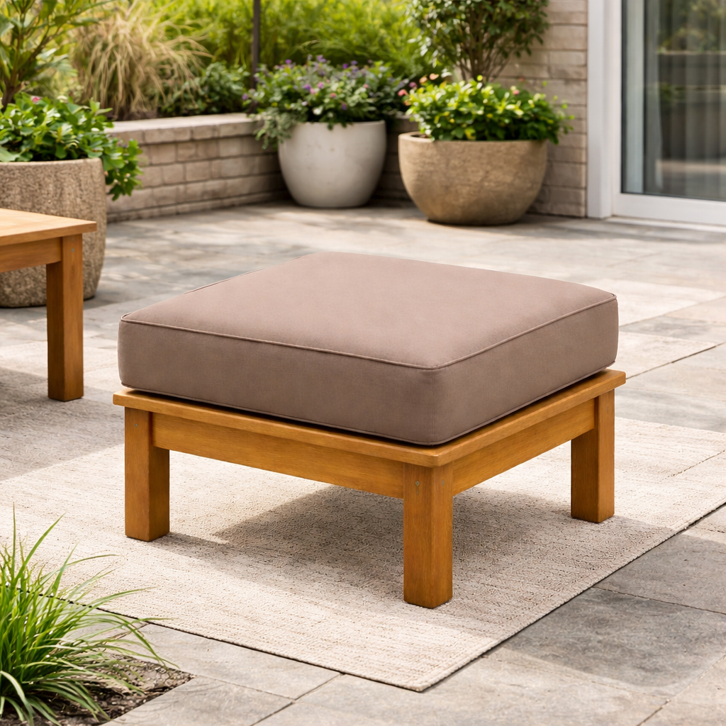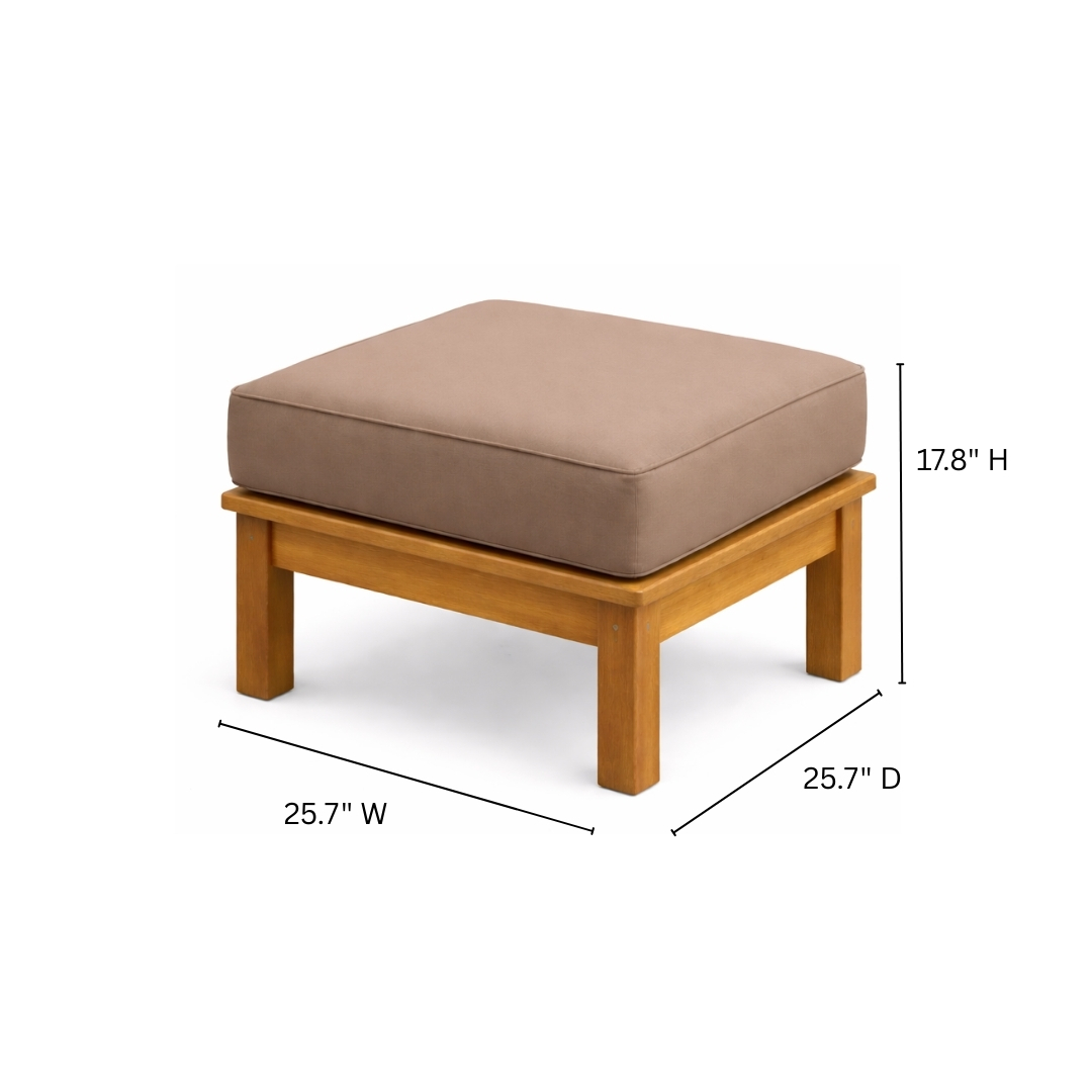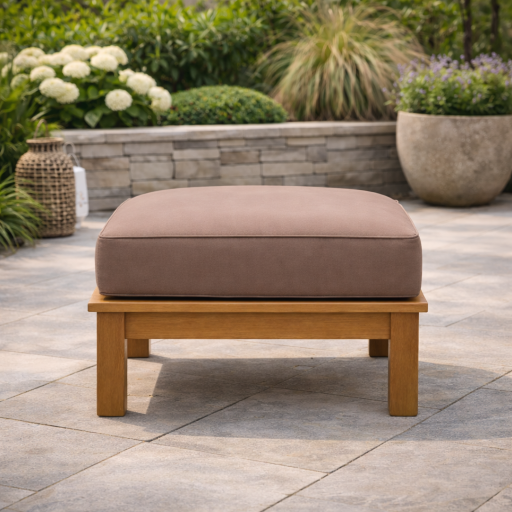 Complete your outdoor sanctuary with the Pavilion Teak Ottoman — a perfect blend of timeless style, sustainable craftsmanship, and functional comfort. As part of the Pavilion Collection, this beautifully crafted ottoman is made from premium Grade-A teak, known for its unmatched durability and natural beauty. Designed with deep seating and paired with a weather-resistant Sunproof fabric cushion, it delivers comfort and convenience all year long. Whether used as a footrest, extra seating, or a side table, the Pavilion Ottoman adds a refined touch to your patio or garden space.