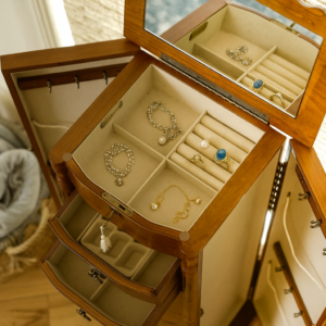 • Secure Storage: Features a locking mechanism to keep your precious jewelry safe and secure.