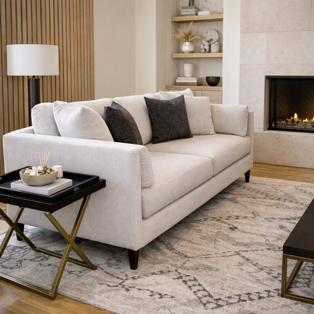 - Luxurious 96″ long sofa.